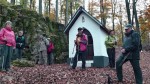 Bad Marienberg. Auf einem kleinen Holzsteg überquerten die Wanderer den Aubach. Von hier aus führte der Weg über freies Feld bald in den herrlich herbstlich buntgefärbten Buchenwald. Im Wald begann sogleich ein anspruchsvoller Aufstieg vorbei an dem "Wildweiberhäuschen" wo die Marmer an der Tafel von den Sagen lesen konnten, die sich um diese Felsformation rankten. Es wurde auch die kleine Kapelle am Weg besucht, die Maria geweiht ist. Bald wurde der Gipfel des Naturschutzgebietes mit weiteren sehr imposanten Basaltformationen erreicht. Der Malberg diente als Opferplatz, Schutzburg und Gerichtsstätte. Es lag etwas Mystisches über diesem Ort.