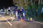 Fahrer und Beifahrerin waren eingeschlossen und wurden durch die verständigten Feuerwehrkräfte gerettet. Durch den Unfall erlitten beide Insassen schwere Verletzungen, sie wurden durch die Rettungskräfte in umliegende Krankenhäuser gebracht. Es besteht keine Lebensgefahr. Am PKW entstand Totalschaden. Die K 113 war für den Zeitraum der Unfallaufnahme bis zur Bergung des PKW für insgesamt zwei Stunden komplett gesperrt.