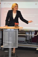 Dr. Johannes Noll, der Dienststellenleiter des DLR in Montabaur begrüßte die Ministerin, natürlich auch die anwesenden Gäste aus der Kommunal-und Landespolitik sowie Vertreterinnen vom DLR und VNS. Danach erläuterte die Projektleiterin Franziska Wieber in Kürze das zuvor beschriebene Projekt „Zukunftsfähiges Kita-und Schulessen“. Nun ergriff Julia Klöckner das Wort und kam ohne Umschweife auf den Anlass ihres Besuches zu sprechen.