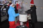 Dann war es soweit: Die Schranken an der Spedition öffneten sich, endlich konnten die Autos, die in Reih‘ und Glied vor der Einfahrt standen, ähnlich wie vor einer Waschstraße, auf das Gelände fahren. Zunächst passierten die Autos eine Art Schleuse, an der sie vom Nikolaus persönlich begrüßt wurden. Für das leibliche Wohl hatten die „CHORonisten“ bestens vorgesorgt, da nach der Begrüßung durch den Nikolaus warme Siede- und Mettwürstchen angeboten wurden. Zum Aufwärmen reichten die fleißigen Geister des Chores weißen und roten Glühwein, natürlich wurde auch alkoholfreier Kinderpunsch ausgeschenkt. Die Bedienung brachte den Besuchern Essen und Getränke bis an das Auto, mit dieser Aktion hatte niemand gerechnet, entsprechend begeistert fielen die ersten Kommentare aus. Zusätzlich erhielt jeder Besucher einen Blumentopf aus Ton, gefüllt mit Erde (dazu später mehr) und einen Butterweck. Ein Fernsehteam vom SWR besuchte sogar das Konzert in Ötzingen, die Crew zeigte sich ausgesprochen erfreut darüber, was sie aufnehmen konnten. Der Sendetermin ist am 10. Dezember 2020 während des Morgen-Magazins von ARD und ZDF vorgesehen.