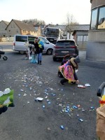 Dann zogen die zwei Teams mit den Bollerwagen los, ausgerüstet mit großen Boxen und wirklich großen Säcken mit Kamelle. Die vorher angemeldeten Kinder wurden an der Haustür überrascht und haben sich sichtlich gefreut.