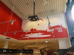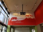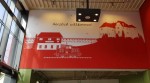 Schon beim Betreten des neuen REWE-Marktes spiegelt sich die Heimatverbundenheit wider. „Herzlich willkommen!“, so die Begrüßung. Darunter ist der Bahnhof Westerburg abgebildet. Auch die Westerburger Wahrzeichen, Schloss und historische Eisenbahnbrücke, sind auf dem großen, rot-weißen Gemälde zu sehen, welches schon vom Kreisel eine gewisse Fernwirkung erzielt. Auf der anderen Seite des großen Eingangsbereiches sind die Liebfrauenkirche und der nahe Wiesensee zu sehen.