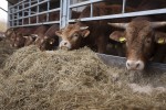 Die Artenvielfalt des Bewuchses auf den Flächen kommt direkt den Tieren zu Gute, denn die Mutterkuhherden der französischen Rinderrasse Limousin (teilweise gekreuzt mit Wagyu) sind ganzjährig im Familienverbund im Freien. Lediglich die Mastbullen sind im Winter im Stall, da die männlichen Tiere empfindlicher sind als die weiblichen. Sie ernähren sich ausschließlich von bio-logischem Futter, ohne Gentechnik und ohne Antibiotika. Da die Rinder Gras fressen, regen sie durch ihren Verbiss das Wachstum des Grases an, das im Wurzelwerk CO2 speichert. Es werden nur soviel Tiere gehalten wie die Fläche ernährt, das sind zwischen 250 und 300 Stück aus eigener Nachzucht. Auch das ist ein geschlossenes System. Dass die Rinder artgerecht aufgezogen und zufrieden sind, sieht man daran, dass sie mit wehrhaften Hörnern in der Gruppe leben, ohne Aggression zu entwickeln.