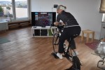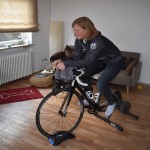 Mandy Jung führte den Autor in ihr „Heiligtum“, ihr Sport- und Yogazimmer. Der Raum wird beherrscht von einem Rad-Rollentrainer und einem überdimensionierten Bildschirm. Diese Stationen befinden sich in allen 25 Haushalten der Vereinsmitglieder, mit diesen Voraussetzungen haben die Mitglieder die Möglichkeit, virtuell online über Konferenzschaltung Rennen gegeneinander zu simulieren und zu trainieren. Dabei können sie alle bekannten Strecken der Welt aufrufen, unter anderem Teilabschnitte der Tour de France. Jeden Freitag wird so rund 1,5 Stunden online trainiert, alle 2 Wochen findet sonntags ein größeres Online-Training über 4 bis 5 Runden á 1,5 Stunden statt. (Wolfgang Rabsch)