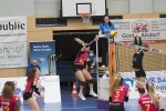 Spätestens abgestellt waren sie dann Mitte des 2. Satzes, nachdem Groß nach individuellen Fehlern mit einer Auszeit (2:5) nachschärfen musste. Zur 2. technischen Auszeit lag Neuwied, das jetzt auch variabler im Angriff auftreten konnte, mit 16:13 vorn, wie auch schon im 1.Satz war es wieder der Doppelblock, der für das 25:15 sorgte.